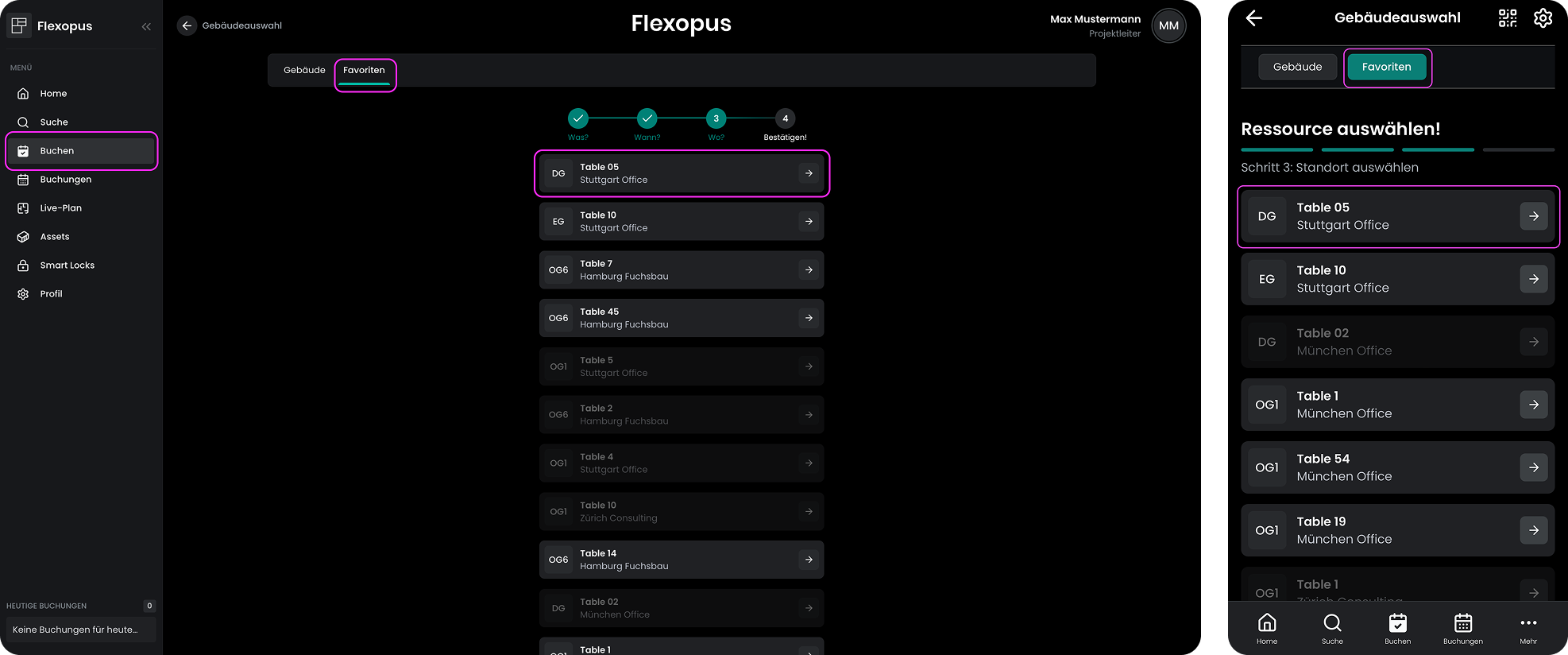 Benutzern ermöglichen, Ressourcen als Favoriten zu markieren, um den Buchungsprozess zu verbessern.