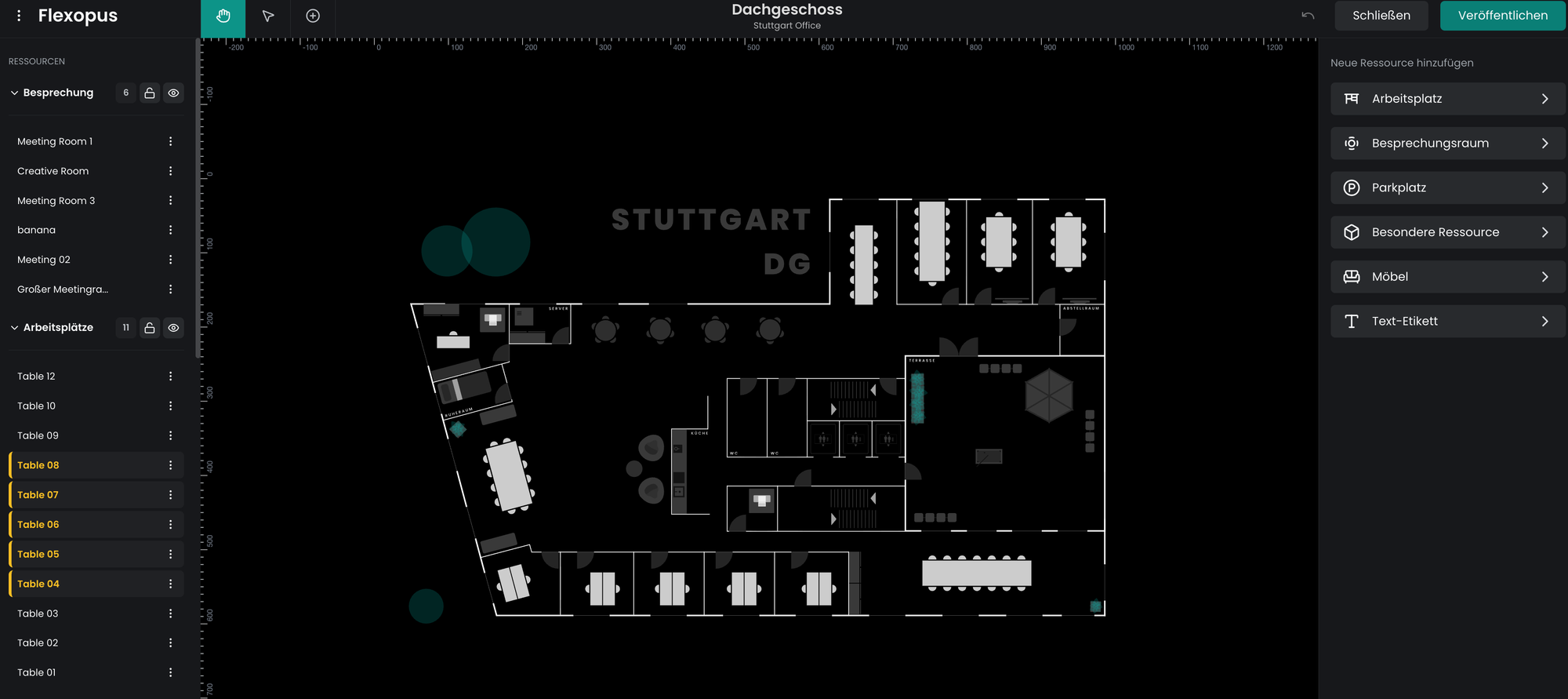 Mit dem Flexopus Floorplanner können Sie Pläne für Ihre Büroräume erstellen und anpassen, wodurch die gemeinsame Nutzung von Schreibtischen und die Verwaltung von Arbeitsbereichen einfach und effizient wird. Ganz gleich, ob Sie mit einem Basisplan beginnen oder einen Premiumplan erweitern möchten, der Floorplanner bietet Ihnen alle Tools, die Sie für die effektive Gestaltung und Verwaltung Ihres Arbeitsbereichs benötigen.