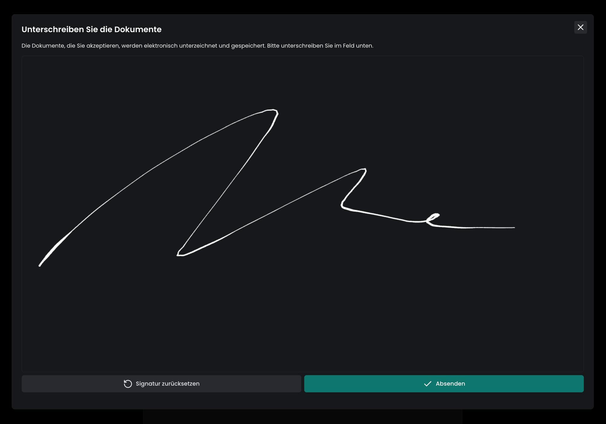 Optional kann von den Besuchern eine Unterschrift verlangt werden, die auf die letzte Seite der erforderlichen Dokumente kopiert wird: