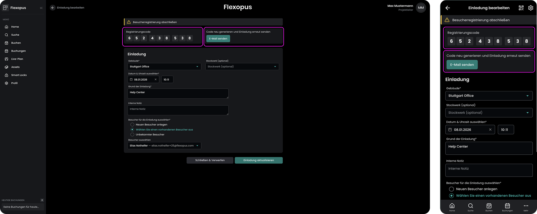 Besucherregistrierung für Nutzer