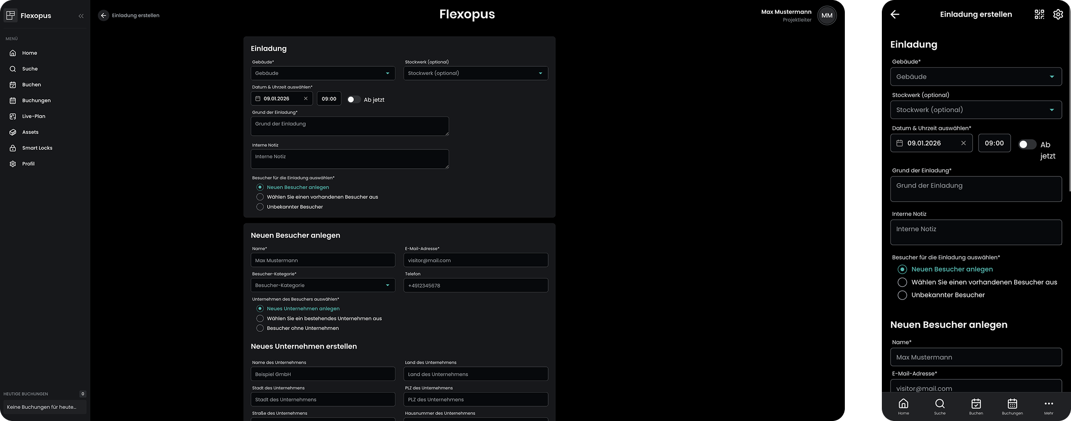 Nach Auswahl der Option Einladung wird das Besucherformular geöffnet.