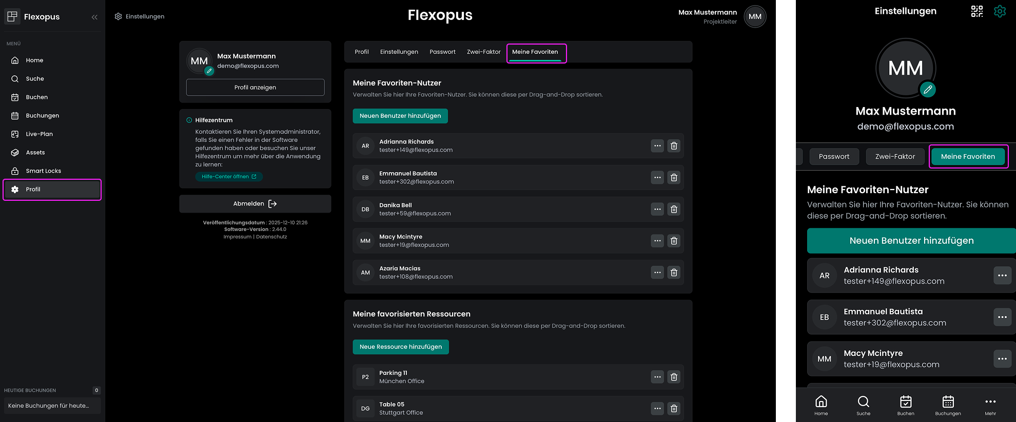 Sie können die bereits als Favoriten markierten Benutzer anzeigen, indem Sie zu Ihrem Benutzerprofil navigieren. Hier können Sie Benutzer hinzufügen oder löschen. Derzeit können Sie bis zu 50 bevorzugte Benutzer hinzufügen, die auch sortiert werden können. Die Priorität wird in der Anwesenheitslistenansicht verwendet.