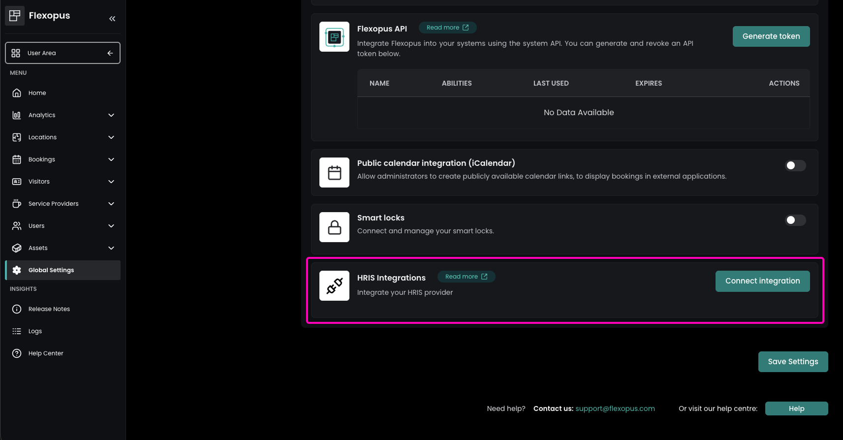 The connection to the HRIS can be configured in Global Settings → Integrations.