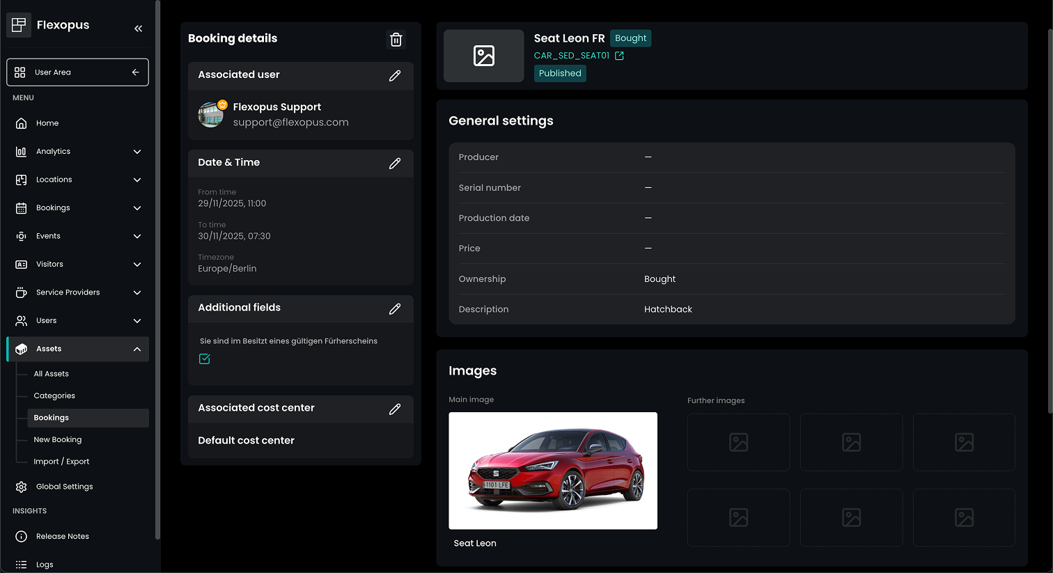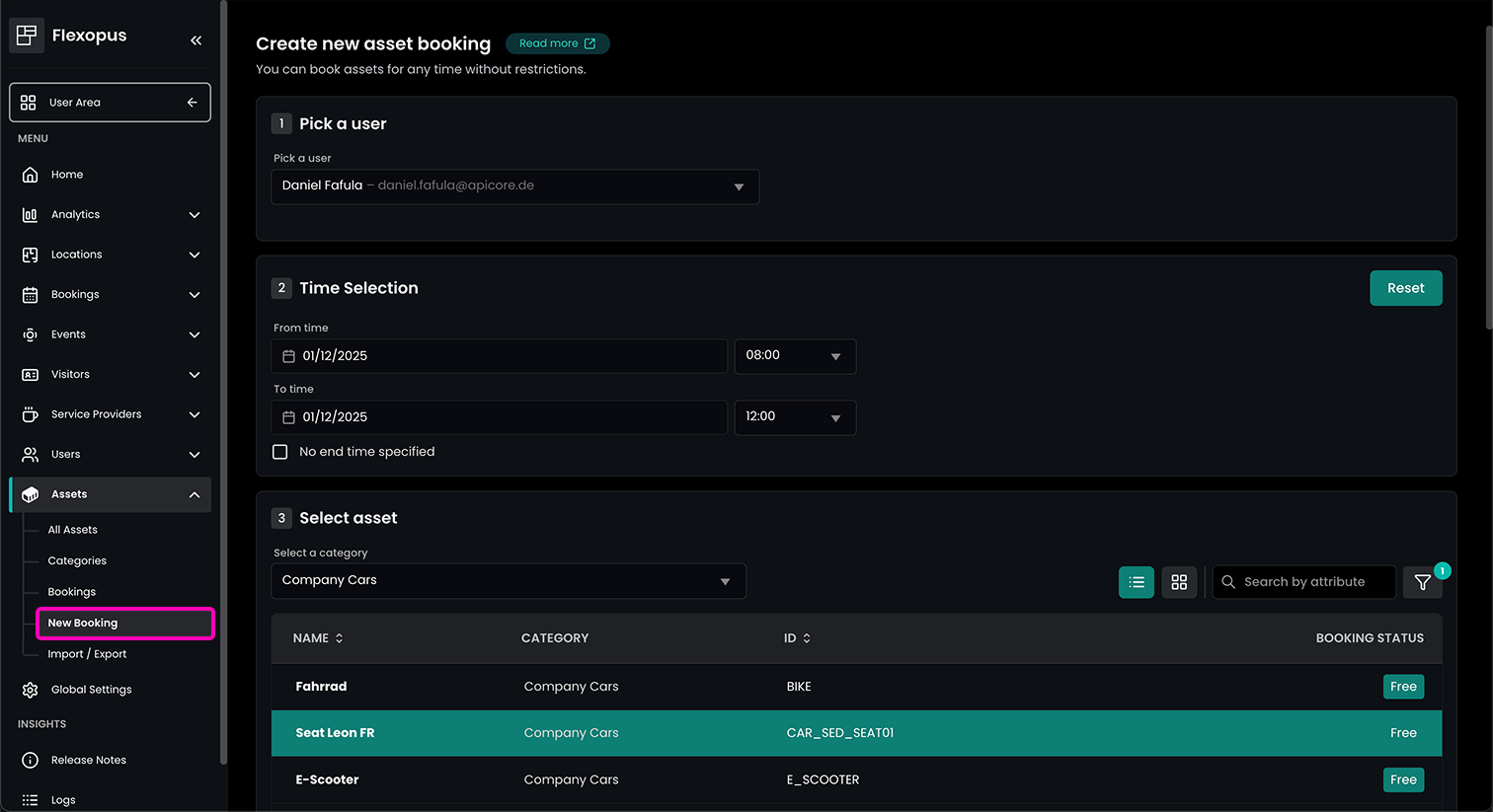 In the admin area, you can create and manage all asset bookings.