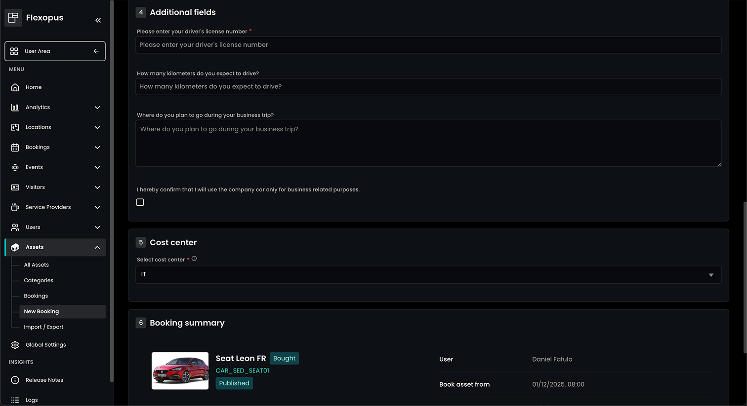 The cost center that should be assigned to that booking. This is only necessary if the cost centers for asset bookings are activated under Global Settings > Asset management > Enable cost centers for asset bookings`