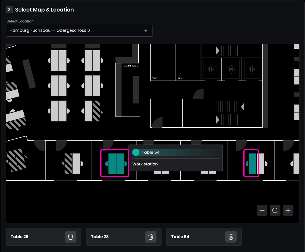 In the last step, select which floor plan you want to book on, and select one or multiple resources.