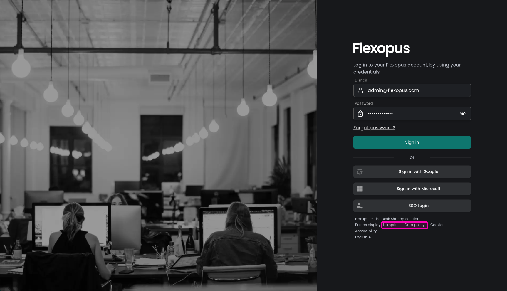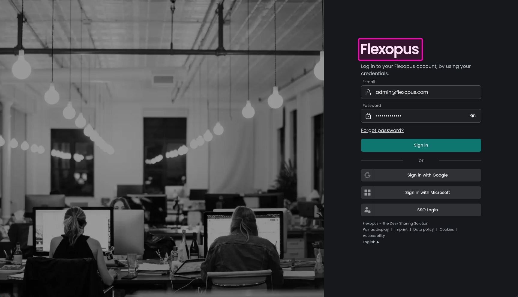 Navigate in Flexopus as an administrator to Dashboard > Settings > Corporate Identity. Here you can upload a welcome image, which will be displayed on the login page of your application, instead of the default image.