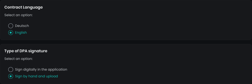 If digital signing of the DPA is not possible in your organization, you can opt for manual signing. To proceed with this option, follow these steps: