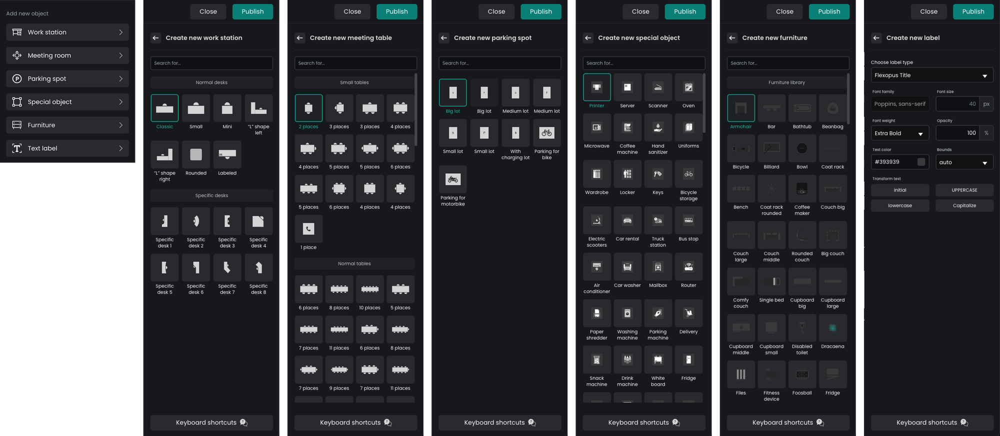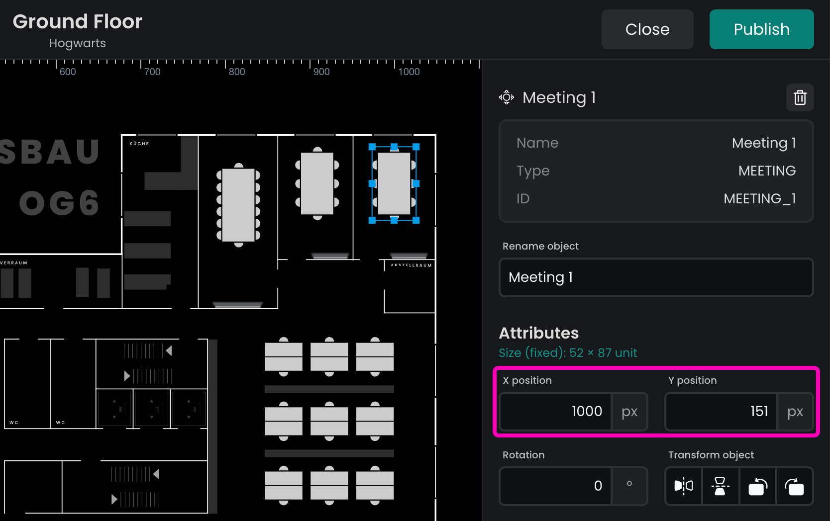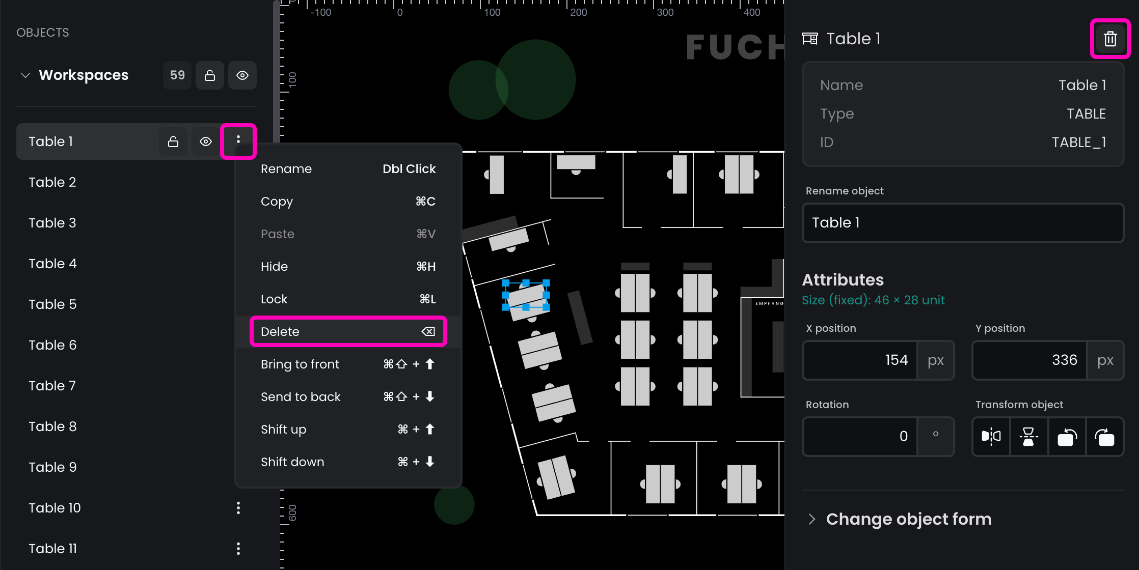 Flexopus maps are stored in SVG format, using a custom scheme for representing static and bookable resources. You can download your floor plan from the Floorplanner and make changes to it in your preferred SVG editor tool. Once you made your changes send the updated plan to support@flexopus.com and our colleagues will upload it for you. All plans will be manually evaluated to match the Flexopus Plan Scheme, ensuring no mistakes are made.