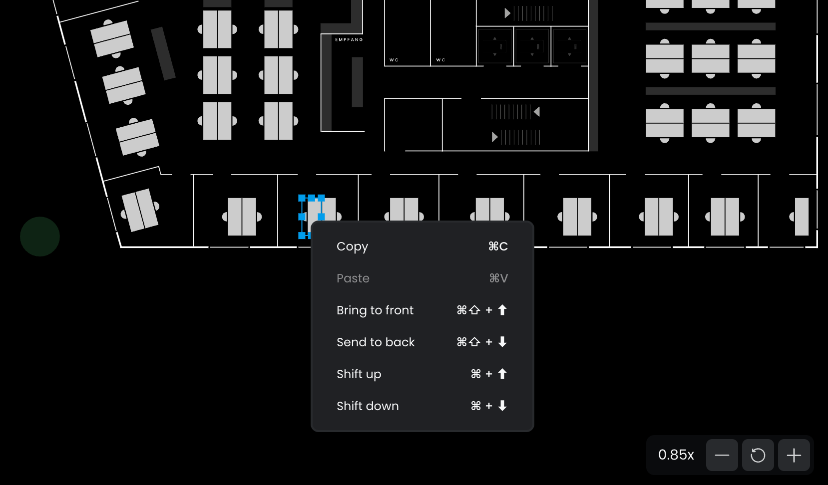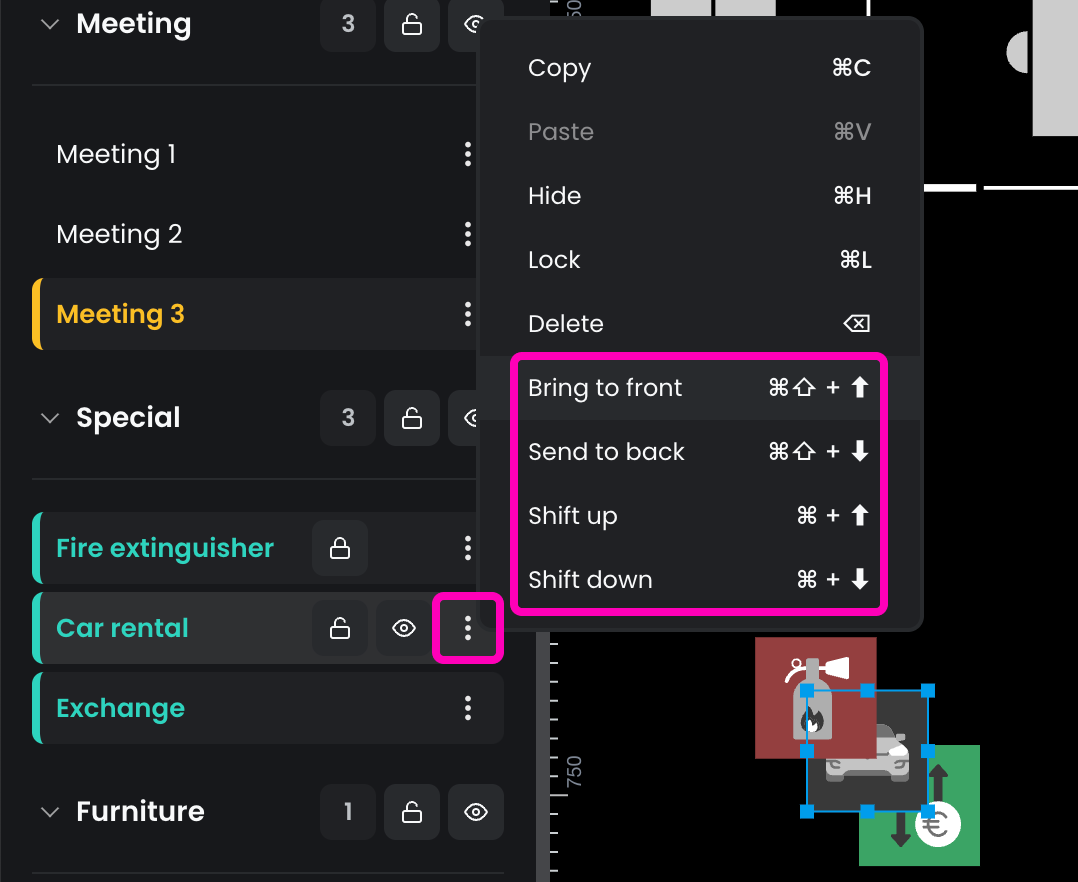 In most cases, layer order isn't a concern, as floor plans typically don't contain overlapping resources. However, if your floor plan does have overlapping elements, you'll need to consider the layer order.