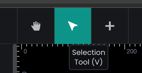 Next to the Options menu, you'll find the Tool Selector, which allows you to switch between the basic tools, such as the Pan tool, Selection tool, and Create Resource tool.