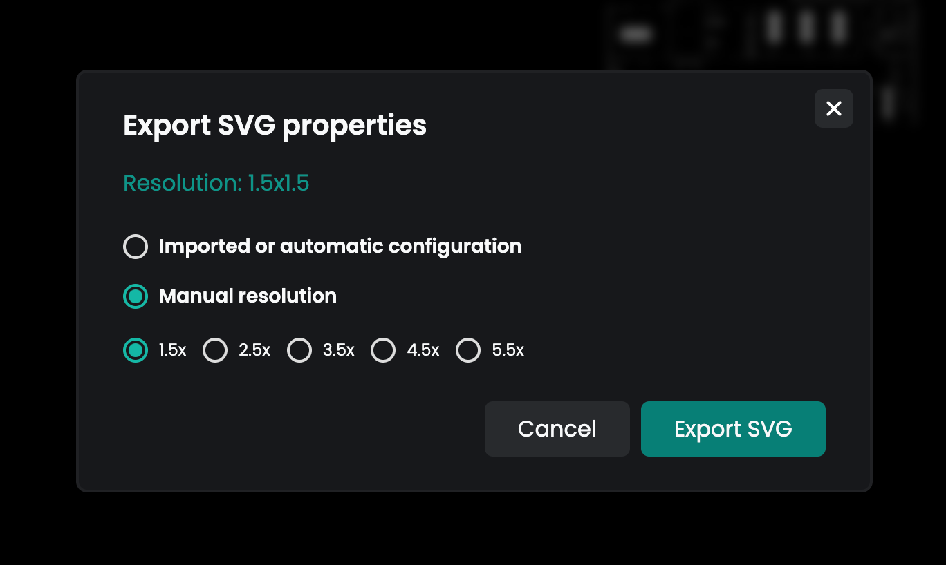 When exporting your plan as an SVG, you will be prompted to select the resolution of the exported map. After making your selection, click Export SVG to download the file to your computer.