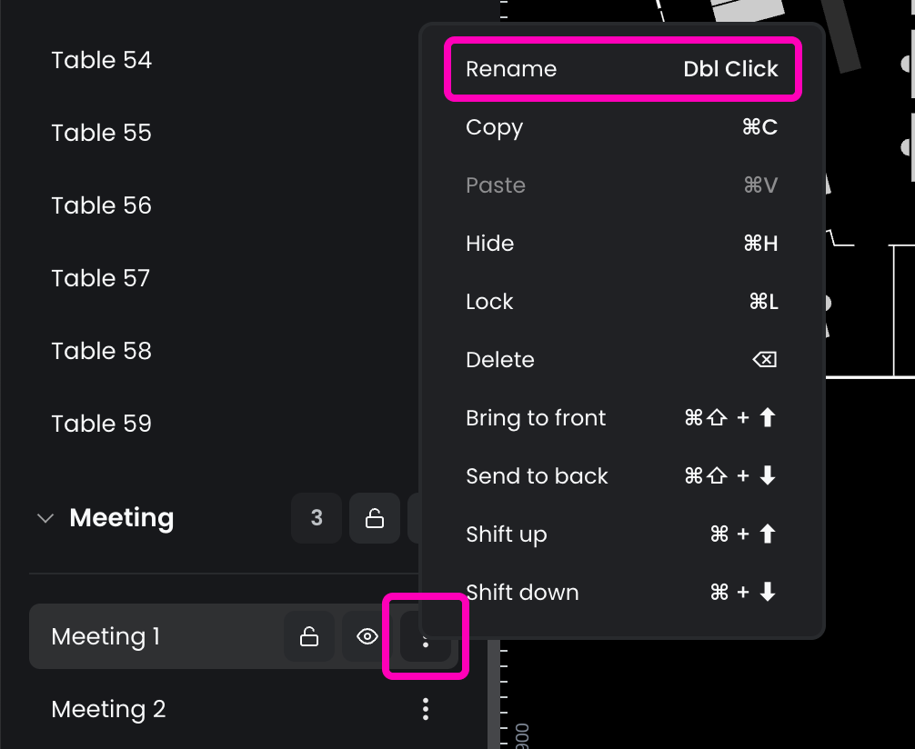 - Method 3: Click the options button (⋮) next to the resource in the layers panel, and select Rename from the menu to enter Edit mode.