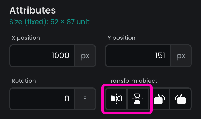 Mirror resource: once selected, click the horizontal or vertical flip buttons to mirror the resource over the X or Y axis.