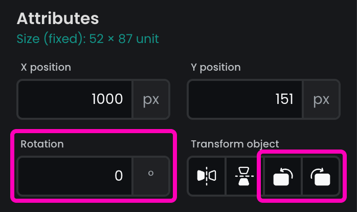 - Alternatively, click the rotate buttons to change the rotation by 90° increments.