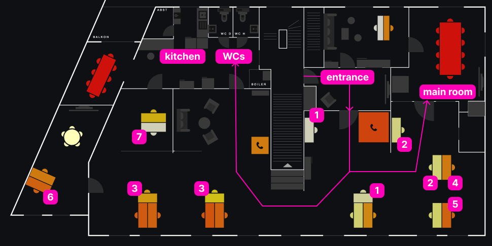Let's take this office map as an example and analyze the behavior of the colleagues for the past 90 days.