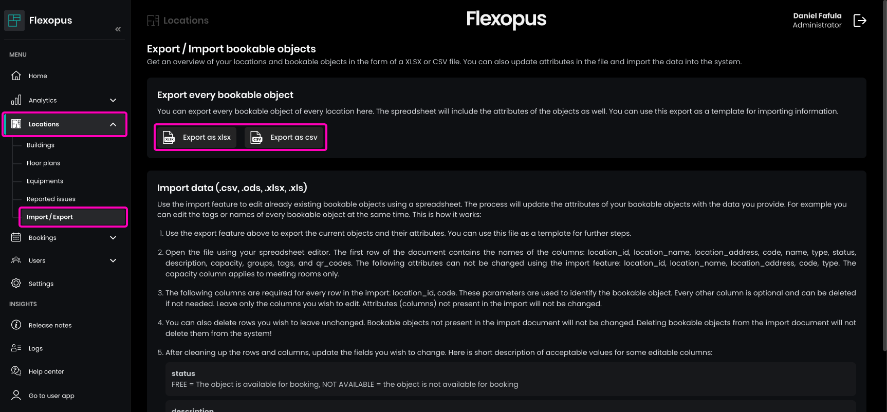 - Once you've made your changes in the spreadsheet, you can import the updated file back into Flexopus to apply the changes.