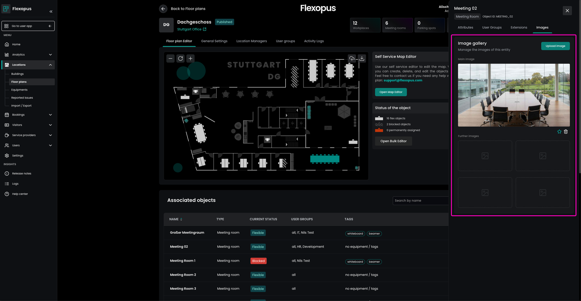 In the Images tab, you can assign images to the object. These images will be displayed during the booking process and in the object’s detail view, helping users to better identify and choose objects.