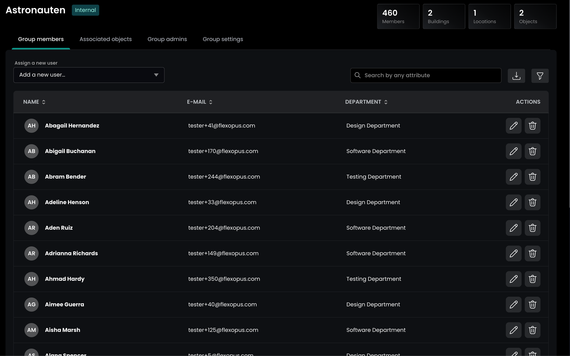 • associated objects: List of buildings, floors, and objects associated with the group.