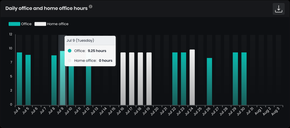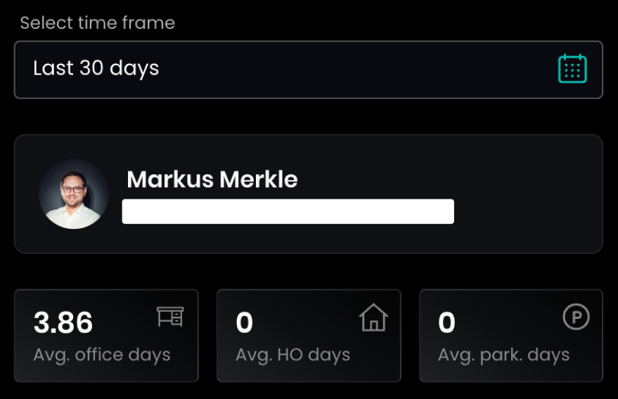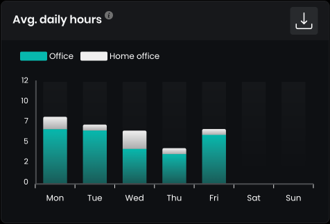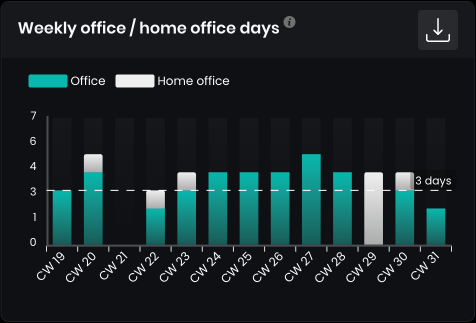 - Avg. HO days: The sum of days with at least one home office reservation, divided by the number of weeks in the selected time frame.