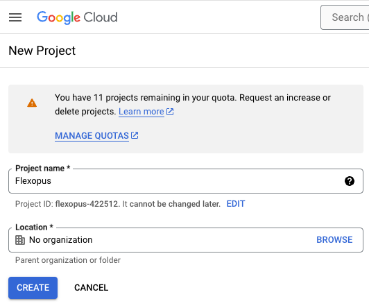 Next, you need to create a project in the Google Cloud Console. Visit this page