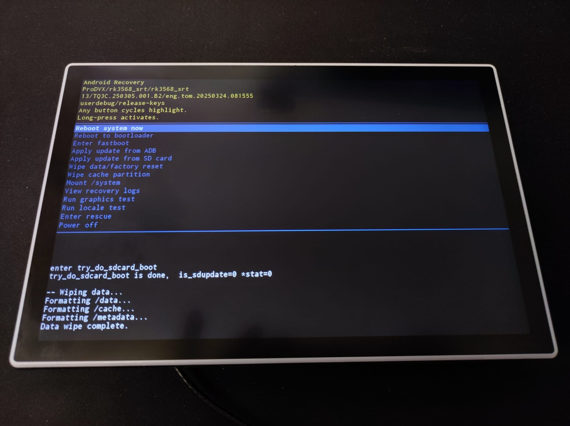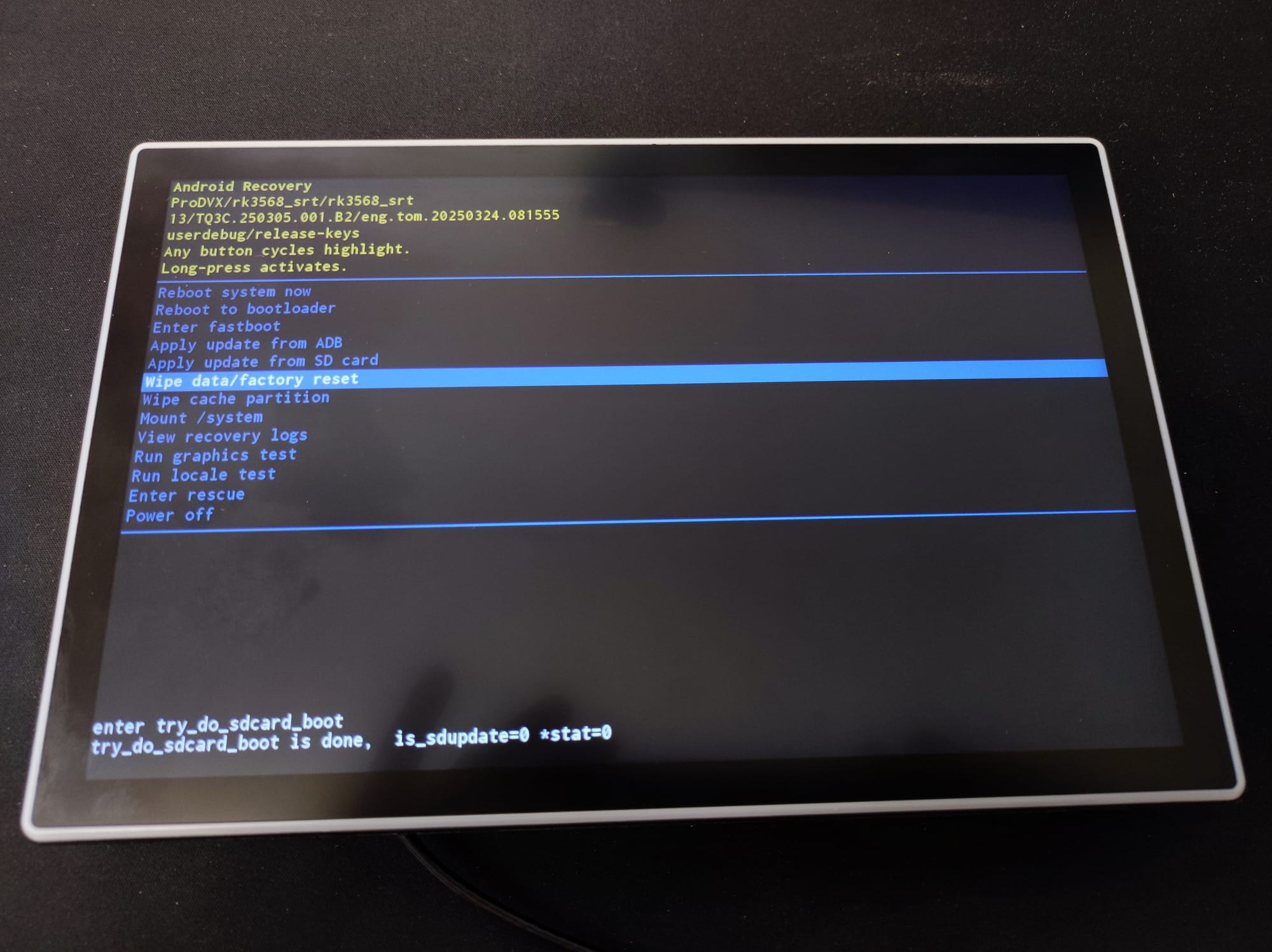 Wipe data/factory resetoption. - Select this option by pressing the power button (