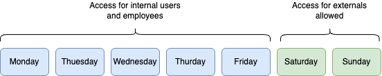 Additionally to the benefits from Use Cases A and B, with this option you can monetize the unused parking space on the weekend. In most cases, the parking space is used for employees only from Monday until Friday. Through the APCOA integration, you can rent the parking space on the weekend for any external vehicle as a public parking space. For example, you can decide to rent parking space for externals on the weekend.