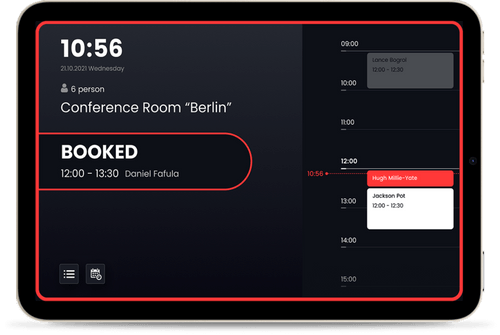The meeting room displays for digital signage can be used as well for booking a meeting room resource on site.