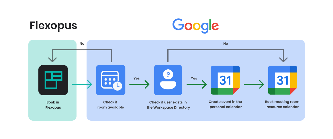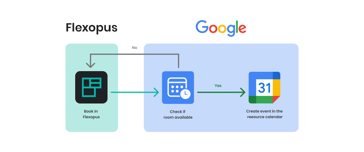 Integrating Flexopus with Google Workspace allows you to synchronize Google Calendar resources, such as meeting rooms, using the Google Calendar API. With this setup: