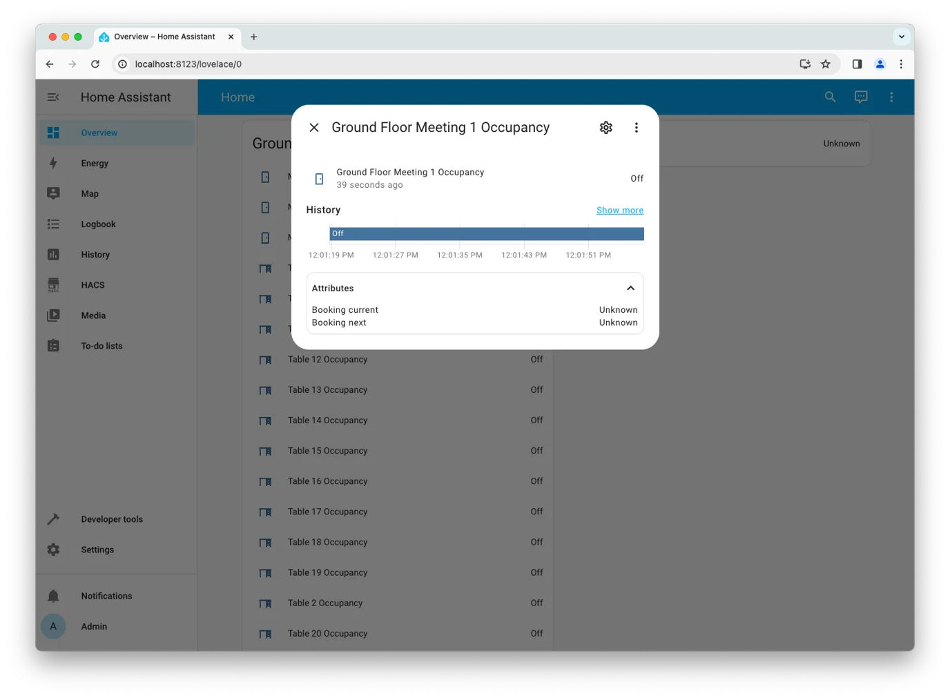 The occupancy sensors for each bookable resource will be added to your Home Assistant.