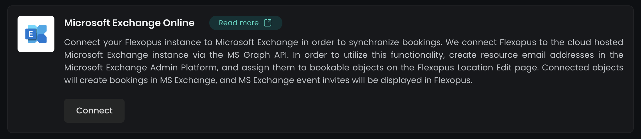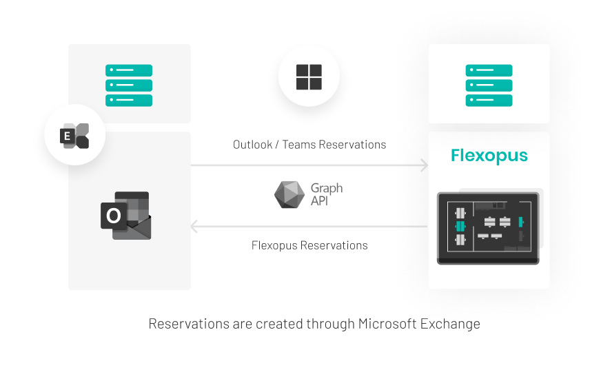 The Microsoft Graph Integration allows you to synchronize your Microsoft Exchange resource calendars with Flexopus for managing meeting rooms. This synchronization is bidirectional and occurs in real time using the Microsoft Graph API: