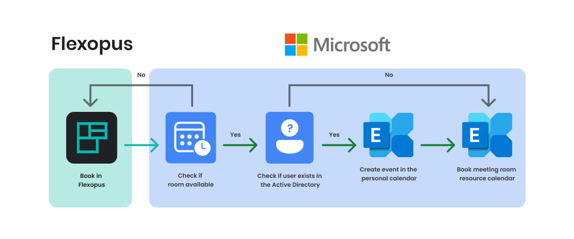 - Reservations created in Flexopus will be reflected in Microsoft Exchange, ensuring seamless integration between both systems.
