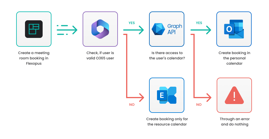 For Flexopus to execute the booking flow, it requires access to both the personal calendar of the user and the resource calendar of the meeting room.