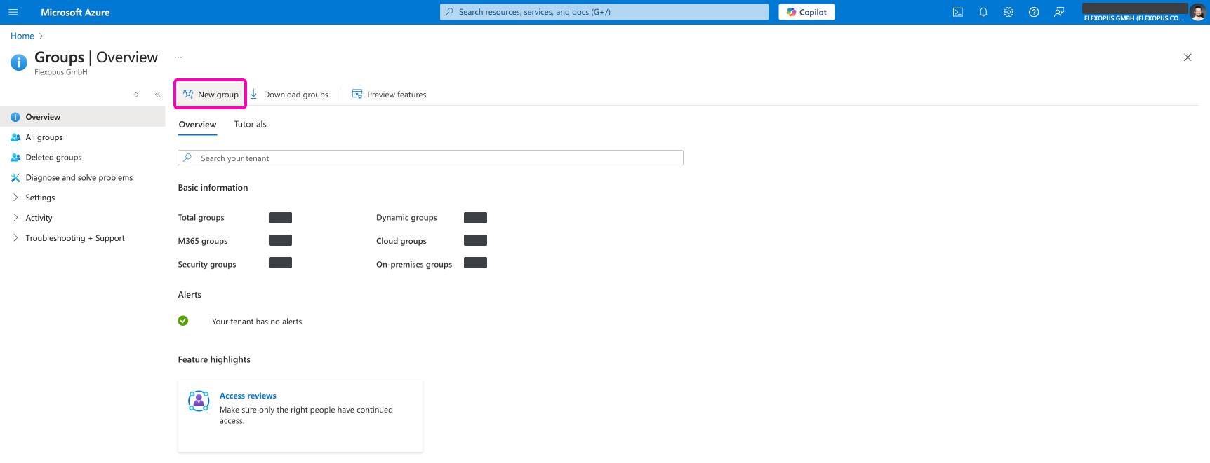 The easiest way to create security groups is to go to the Azure Active Directory and to create it manually: