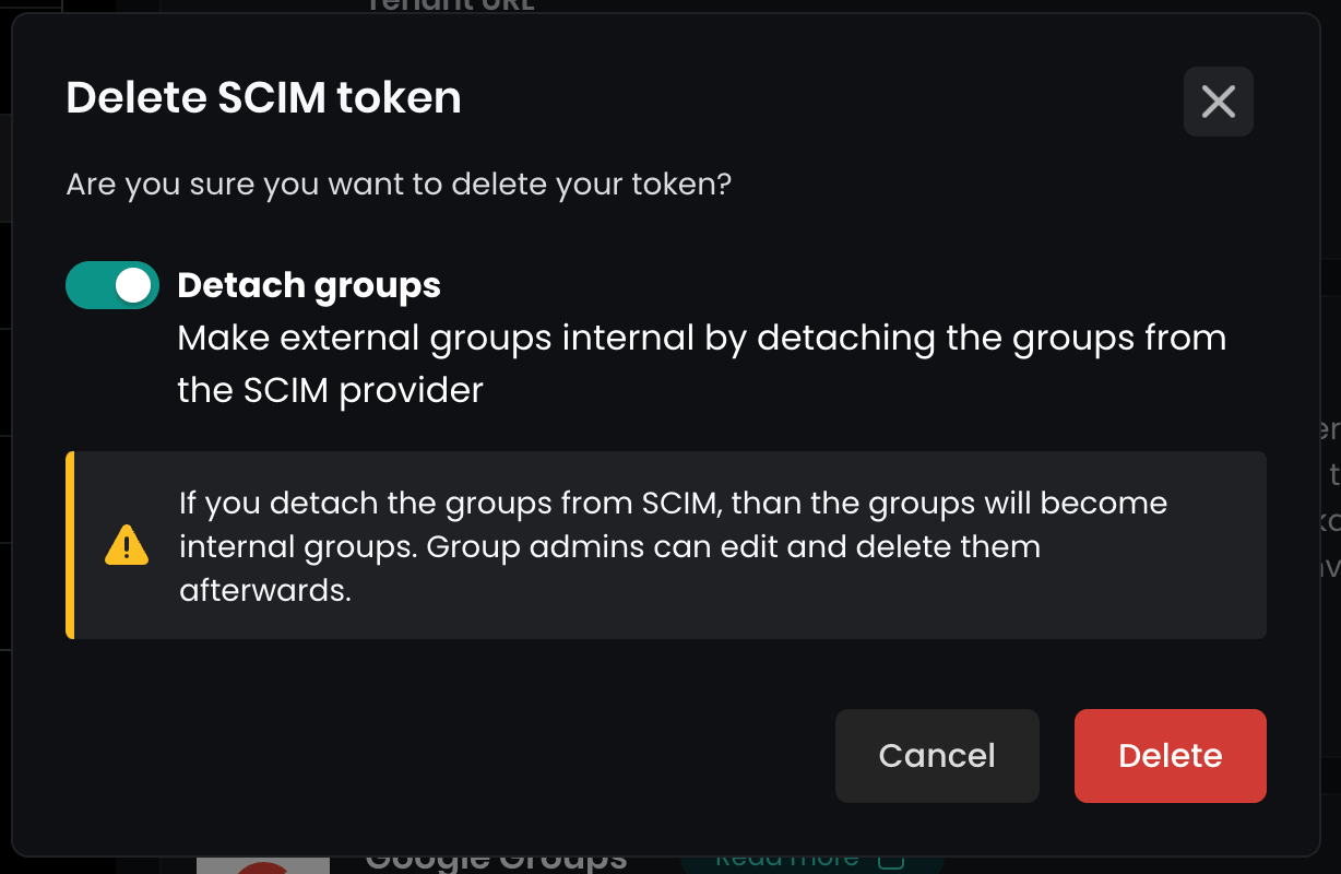 Detach the groups. - Enable this option to convert the current external read-only groups into internal groups, allowing you to edit them afterward.