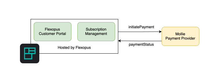 The subscription management and the payment processing are two different systems. Flexopus uses a self-hosted subscription management solution. This system is managing the subscription plans and creates the invoices. An external payment provider is used to: