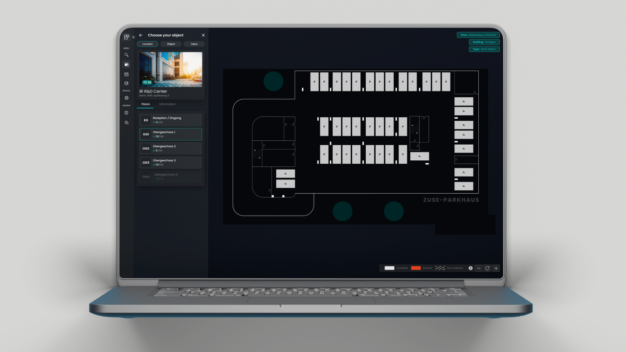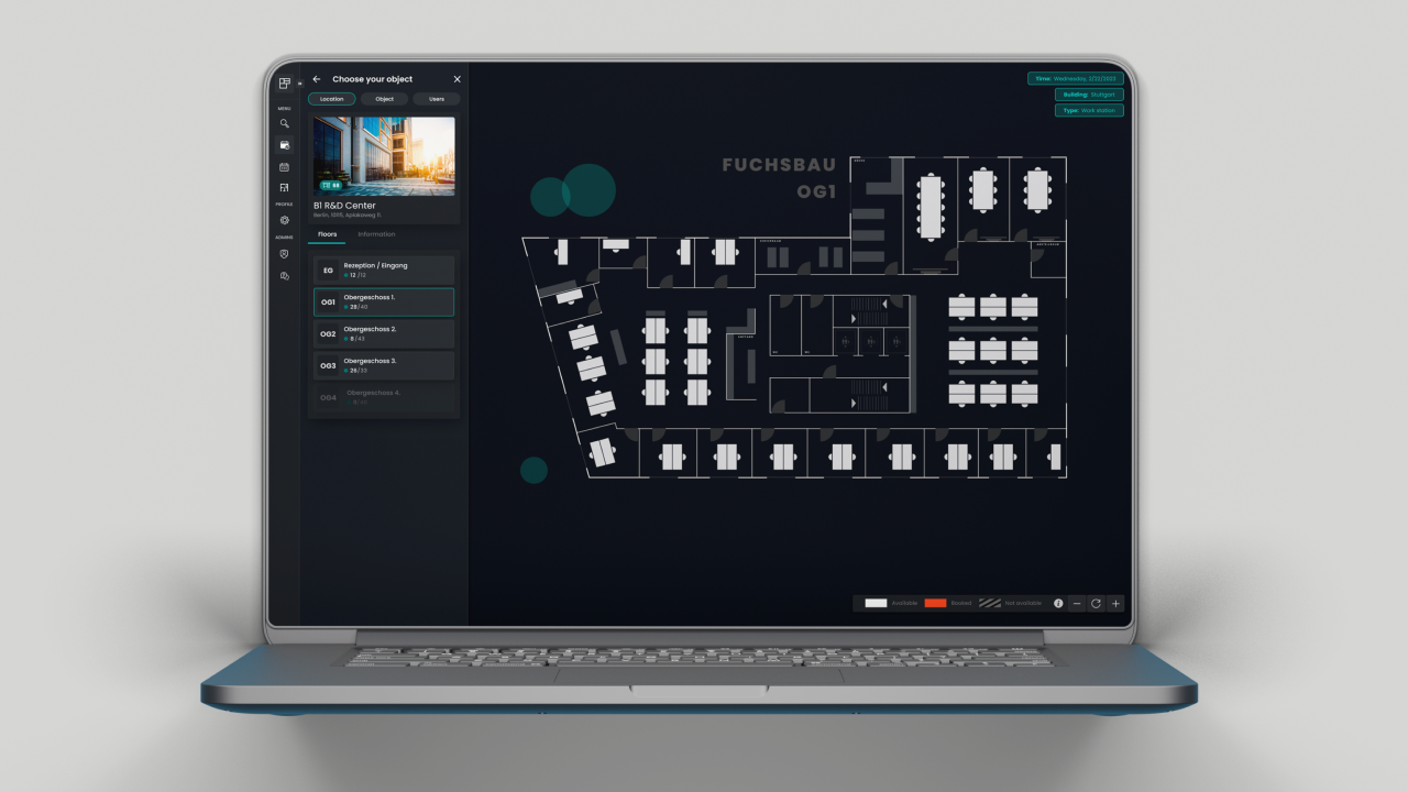 As a user you can select a time frame, select a building and see which desks can be booked. Basically, each user is responsible to book the desks based on their personal demand.